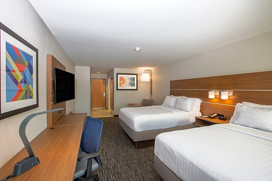 The Holiday Inn Express Hastings offers a variety of double rooms. The King Room and Queen Room with Two Queen Beds both have a room size of 323 sqft and do not allow smoking. The King Room accommodates 2 adults and 1 child with a King size bed, while the Queen Room with Two Queen Beds accommodates 4 adults and 3 children with 2 Queen size beds. The Room Selected at Check-In also has a room size of 323 sqft, does not allow smoking, and can accommodate 2 adults and 1 child with either a King size bed or 2 Queen size beds. Another option is the King Room with Sofa Bed, which accommodates 4 adults and 3 children with a King size bed and a Sofa Bed.