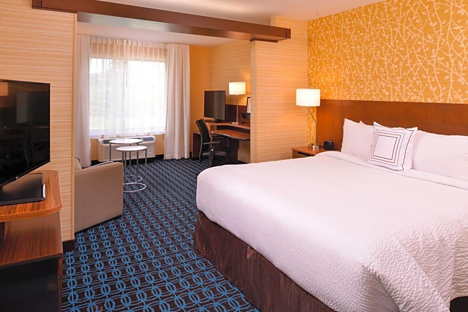 The Fairfield Inn & Suites offers a variety of room types including King Rooms, King Suites, and Queen Rooms with Two Queen Beds. All rooms are non-smoking and range in size from 312 sqft to 377 sqft. The King Room and the King Suite both accommodate 2 adults and 1 child, while the Queen Room with Two Queen Beds can accommodate 4 adults and 3 children. The King Room and King Suite have 1 king-size bed, while the Queen Room with Two Queen Beds has 2 queen-size beds.