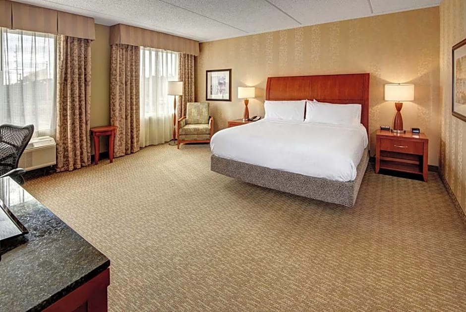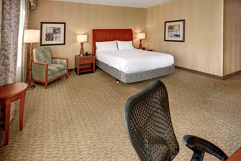 This mobility and hearing accessible standard room features one king-sized bed and an accessible tub. The room also has a visual alarm, and notification devices for the doorbell or door knock and incoming telephone calls. Grab bar in tub with attached accessible seating, lowered vanity in bathroom, and lowered closet shelf. And the pursuit of the perfect night's stay continues with an evolution of innovative new amenities including the bed, chair, and TV. The ergonomic Mirra chair by Herman Miller is good for your back and better for work. Enjoy your favorite show on our 36-inch HDTV. There's also a microwave, refrigerator and coffee/tea maker to help you feel at home. And for conducting business, our rooms ensure your productivity with the spacious work desk. Any corresponding photo may not reflect the specific accessible room type or room feature.