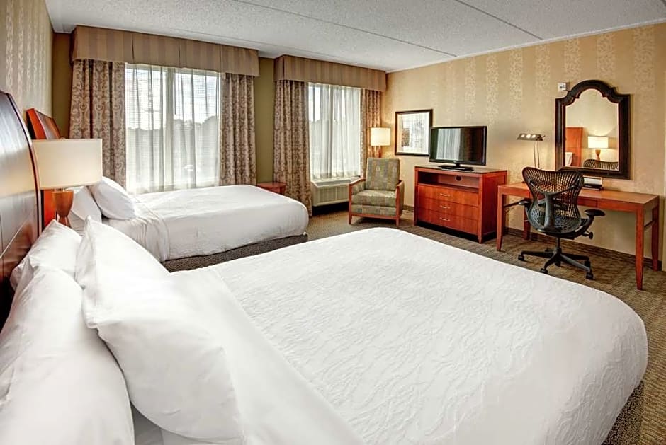 This mobility and hearing accessible standard room features two queen-sized beds and an accessible tub. The room also has a visual alarm, and notification devices for the doorbell or door knock and incoming telephone calls. Grab bar in tub with attached accessible seating, lowered vanity in bathroom, and lowered closet shelf. And the pursuit of the perfect night's stay continues with new amenities including the bed, chair, and TV. The ergonomic Mirra chair by Herman Miller is good for your back and better for work. Enjoy your favorite show on our 36-inch HDTV. There's also a microwave, refrigerator and coffee/tea maker to help you feel at home. And for conducting business, our rooms ensure your productivity with the spacious work desk, two telephones with dataport and voicemail. Any corresponding photo may not reflect the specific accessible room type or room feature.