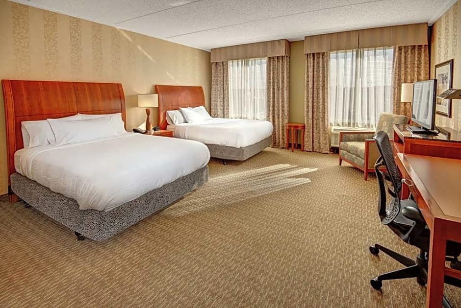 This mobility accessible standard room features two queen-sized beds and an accessible tub. This room offers the latest in technology and ergonomic comfort to our guests. Grab bar in tub with attached accessible seating, lowered vanity in bathroom, and lowered shelf in closet. And the pursuit of the perfect night's stay continues with new amenities including the bed, chair and TV. The ergonomic Mirra chair by Herman Miller is good for your back and better for work. Enjoy an in-room movie or your favorite show on our 36-inch HDTV, refrigerator and coffee/tea maker to help you feel at home. And for conducting business, our rooms ensure your productivity with the spacious work desk, two telephones with dataport and voicemail. Any corresponding photo may not reflect the specific accessible room type or room feature.