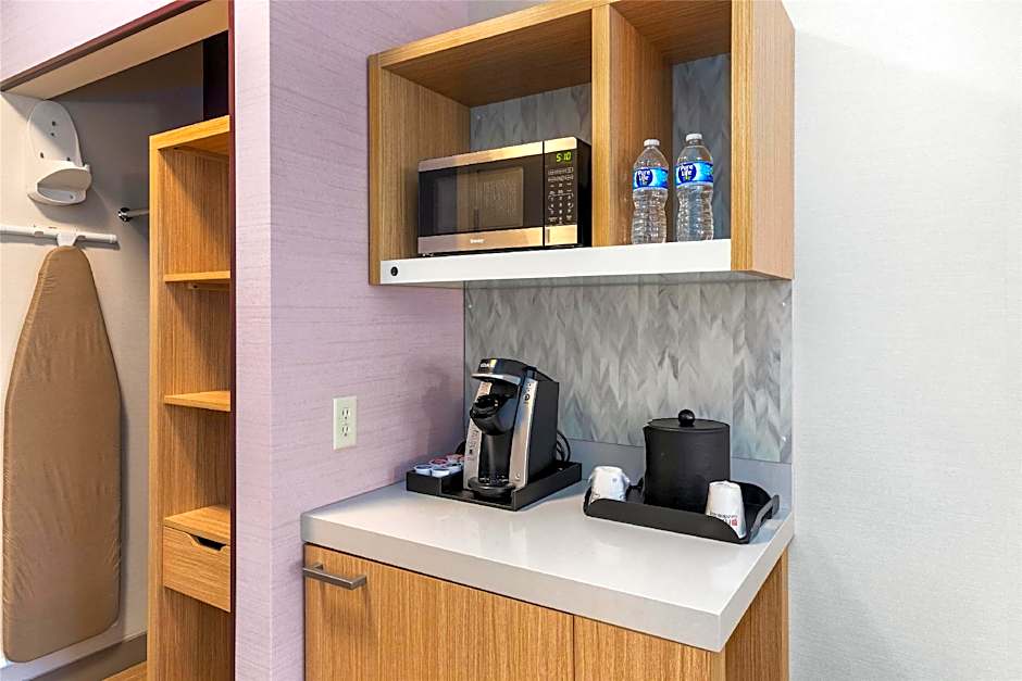 This mobility and hearing accessible Jr. suite features one king-sized bed and a roll-in shower. The room also has a visual alarm, notification devices for the doorbell or door knock and incoming telephone calls. This mobility accessible suite has a lowered vanity in bathroom and lowered shelf in closet. The ergonomic Mirra chair by Herman Miller is good for your back and better for work. Enjoy your favorite TV show on our 36-inch HDTV. There's also a microwave, refrigerator and coffee/tea maker to help you feel at home. For conducting business, our rooms offer a spacious work desk, two telephones with dataport and voice mail and complimentary wired and wireless high-speed internet access. Any corresponding photo may not reflect the specific accessible room type or room feature.