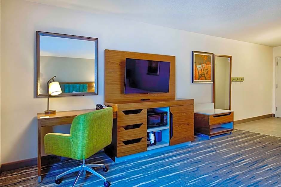 Any corresponding photo may not reflect the specific accessible room type or room feature. This mobility accessible, nonsmoking suite features one king sized bed , and an a Whirlpool Tub and Accessible shower. The room features include a microwave, refrigerator, comfortable soft seating, a HDTV, and easy to operate alarm clock/radio. The free high speed internet access will help you stay connected while on the road. If you prefer not to work at the desk, you can use the convenient lapdesk instead. You'll also enjoy the convenience of having a coffee maker with tea service and iron/ironing board in your room.