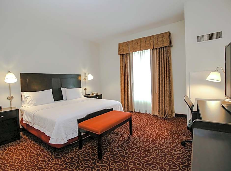 The Hampton Inn Kingston offers a variety of room types, including King Rooms, King Studios with Whirlpool, King Accessible Rooms, King Rooms with Tub - Disability Access, and Queen Rooms. All rooms are non-smoking and can accommodate a maximum of 3 adults and 2 children, except for the Queen Rooms which can accommodate 4 adults and 3 children. The King Rooms and King Studios have a single King size bed, while the Queen Rooms have 2 Queen size beds. Room sizes range from 248 sqft to 269 sqft.