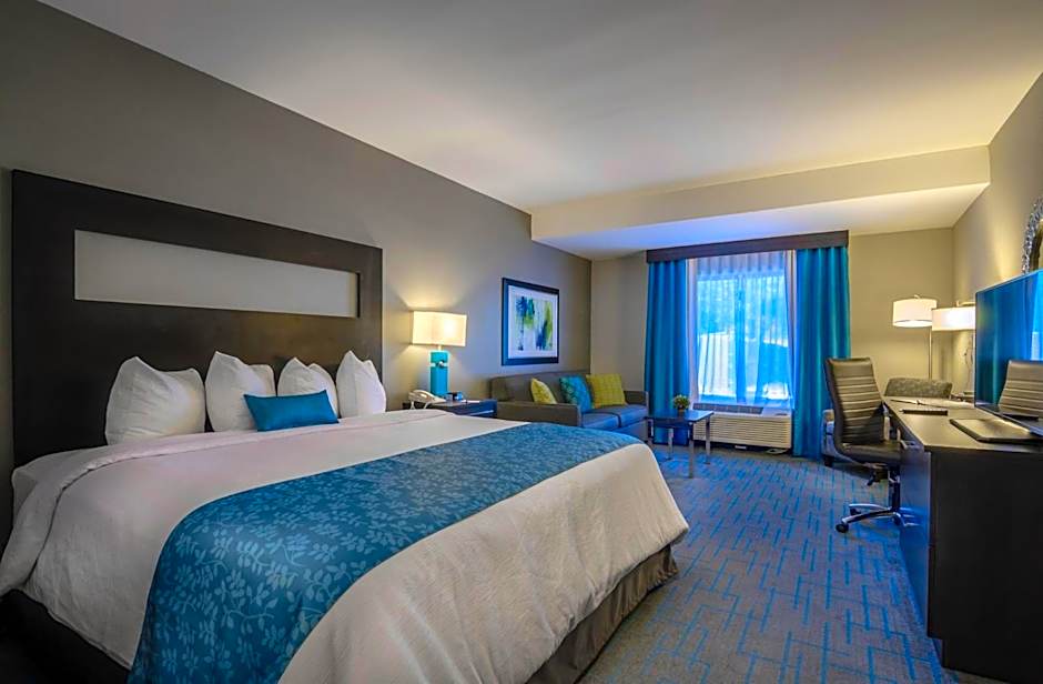 Guests at the Holiday Inn & Suites Syracuse Airport - Liverpool can spend their time enjoying various leisure amenities. They can relax and swim in the indoor swimming pool, soak in the hot tub or Jacuzzi, or lounge on the beach chairs. There is also a mini golf course for guests to enjoy some friendly competition.