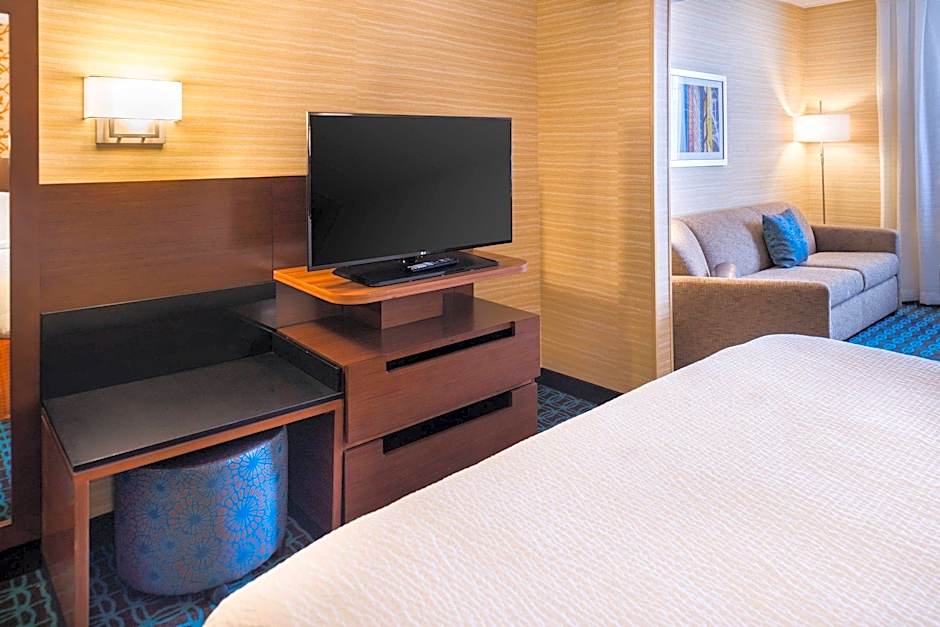 The Fairfield Inn & Suites by Marriott Olean offers a Queen Room with Two Queen Beds, a King Suite, and a King Room. The Queen Room and King Room both have a double occupancy and a room size of 312 sqft. Smoking is not allowed in any of these rooms. The Queen Room has two queen beds while the King Room has one king size bed. The King Suite can accommodate up to four adults, has a room size of 344 sqft, and features a king size bed and a sofa bed.