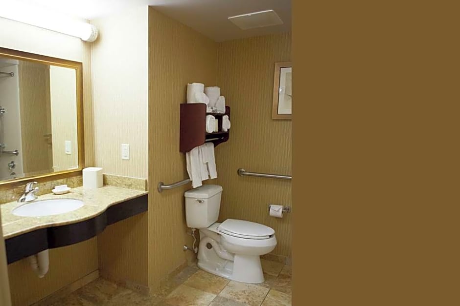 Any corresponding photo may not reflect the specific accessible room type or room feature. This mobility and hearing accessible, nonsmoking room features one king sized bed with sofa bed , and an accessible bath tub. The room/suite also has a visual alarm and notification devices for the doorbell or door knock and incoming phone calls. The room features comfortable sofabed, microwave, refrigerator, a 32" Flat Screen HDTV, and easy to operate alarm clock/radio. The free high speed wired and wireless internet access will help you stay connected while on the road. If you prefer not to work at the desk, you can use the convenient lapdesk instead. You'll also enjoy the convenience of having a coffee maker with tea service and iron/ironing board in your room.