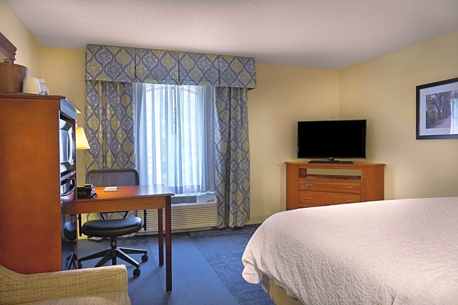 Any corresponding photo may not reflect the specific accessible room type or room feature. This hearing accessible, nonsmoking room features one king sized bed(s). The room also has a visual alarm and notification devices for the doorbell or door knock and incoming phone calls. The room features our luxurious Clean and Fresh Hampton Bed, comfortable soft seating, microwave, refrigerator, a HDTV, and easy to operate alarm clock/radio. In the bath you will enjoy a WaterPik shower head and curved shower rod. The free high speed internet access will help you stay connected while on the road. If you prefer not to work at the desk, you can use the convenient lapdesk instead. You'll also enjoy the convenience of having a coffee maker with tea service and iron/ironing board in your room.