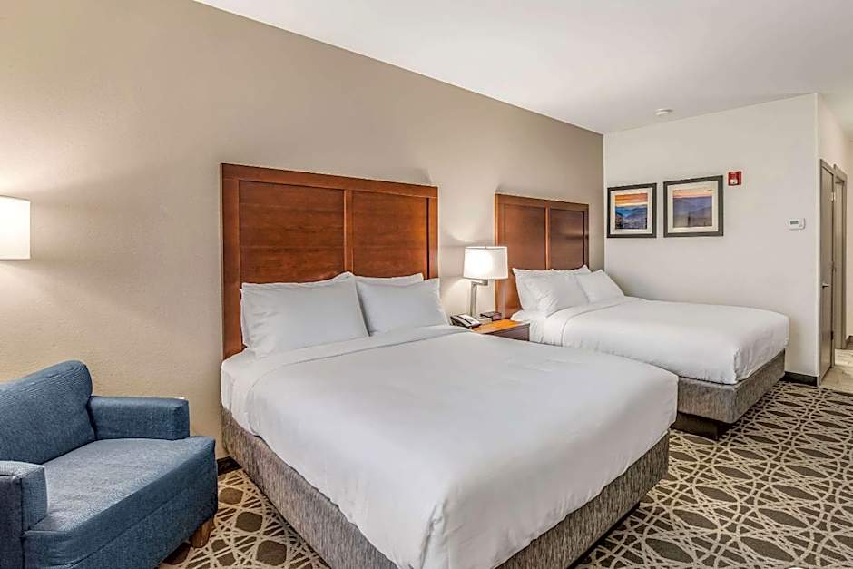 The Comfort Inn & Suites hotel offers various room types including suites, standard king rooms, and standard queen rooms with two queen beds. All rooms are non-smoking and have a room size of 301 sqft. The suites and standard queen rooms can accommodate 4 adults and 3 children, while the standard king rooms can accommodate 2 adults and 1 child. The beds available are either queen size or king size, depending on the room type.