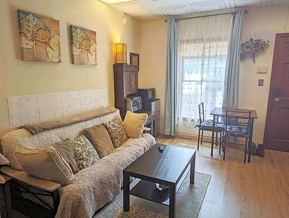 Step inside your private oasis, designed for peace and tranquility, and soak up the quiet vibes that make this suite a hidden gem. Enjoy free parking, air conditioning, and a fully equipped kitchenette to whip up your favorite snacks. Feeling cozy? Pop into your streaming service, like Netflix, for a movie night in your spacious haven after a day of exploring the local restaurants within walking distance.