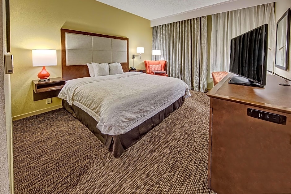 Kitchen, seating area, two 32-inch LCD HDTVs, work space, free WiFi access, coffeemaker Relax in this spacious two-room suite featuring a clean and fresh Hampton bed® and two 32-inch LCD TVs with HD channels. Curl up on the plush sofa in the seating area, which also boasts a recliner or lounge chair. The work desk and free WiFi access are useful for catching up on business while traveling. The bathroom contains plush towels and a curved shower rod, offering more comfort and space when showering. Prepare a drink or some snacks in the well-equipped kitchen which includes a coffeemaker and other amenities.