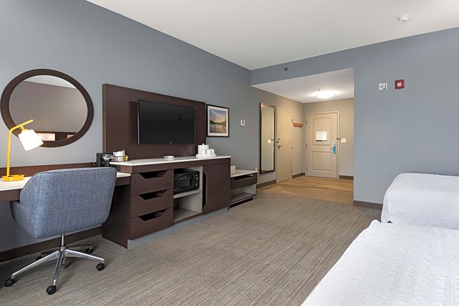 32-inch HDTV, sofa bed, work desk, coffeemaker, free WiFi access This spacious studio suite offers one king-sized clean and fresh Hampton bed®, plus a comfortable sofa bed to sleep an extra guest. Stay entertained with a variety of movies and HD channels on the 32-inch HDTV. Business amenities include a large work desk and free WiFi access. Refresh in the bathroom with a WaterPik showerhead and fluffy towels. This room also features a handy coffeemaker to help you feel at home.