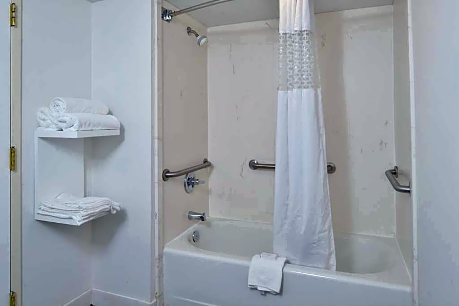 This mobility accessible, non-smoking room features one king-sized bed, and an accessible bath tub. The room features comfortable soft seating, microwave, refrigerator, a HDTV, and easy to operate alarm clock/radio. The free high-speed internet access will help you stay connected while on the road. If you prefer not to work at the desk, you can use the convenient lapdesk instead. You'll also enjoy the convenience of having a coffeemaker with tea service and iron/ironing board in your room. Any corresponding photo may not reflect the specific accessible room type or room feature.