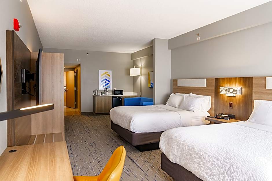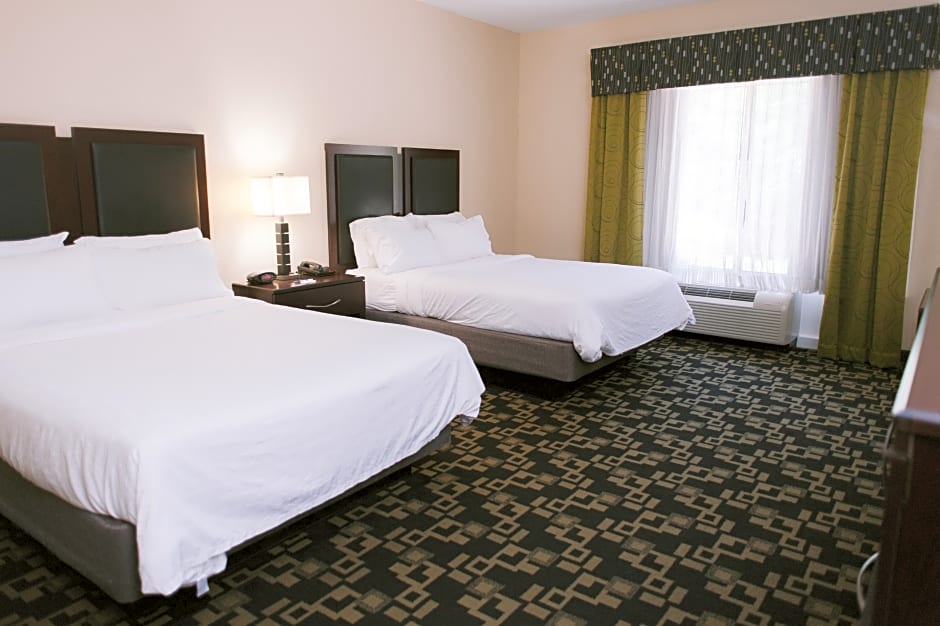 The Holiday Inn Express Hotel Raleigh Southwest offers a variety of room options. They have Queen Suites and King Suites, both accommodating up to 5 adults and 4 children. The Standard Room and King Room can accommodate 2 adults and 1 child, while the Queen Room with Two Queen Beds can accommodate 4 adults and 3 children. Smoking is not allowed in any of the rooms. The bed sizes range from Queen to King, and the room sizes are generally 32 sqft, with a larger size of 43 sqft for the accessible rooms.