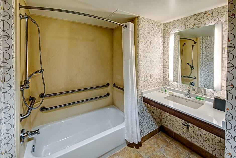 The Holiday Inn Rocky Mount I-95 @ US 64 offers a variety of room options. These include Queen Rooms with Two Queen Beds, Standard Rooms with a single King bed, King Rooms with mobility access tubs, King Suites, and Queen Rooms with Two Queen Beds with mobility accessible tubs or roll-in showers. All rooms are non-smoking and have a generous size of 323 sqft. The hotel can accommodate 2 adults and 1 child in the Standard and King Suite rooms, and 4 adults and 3 children in the Queen Rooms and King Rooms with sofa beds.