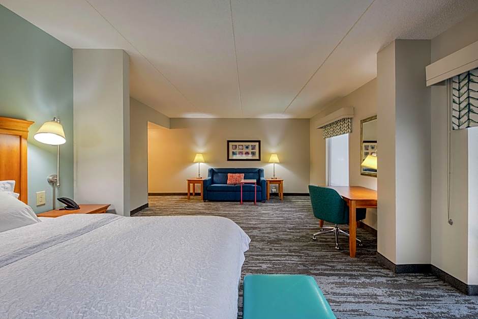 The types of rooms available at the Hampton Inn Wilmington University Area include King Studio with Sofa Bed - Non-Smoking, Queen Room with Two Queen Beds and Bath Tub - Disability/Hearing Accessible, Deluxe Queen Room with Two Queen Beds - Non-Smoking, Deluxe Queen Room with Two Queen Beds - Hearing Accessible - Non Smoking, Deluxe King Room - Non-Smoking, King Room Mobility/Hearing Accessible with Roll-In Shower/Non-Smoking, and King Suite. Smoking is not allowed in any of these rooms. Various room sizes and bed configurations are available to accommodate different numbers of adults and children.
