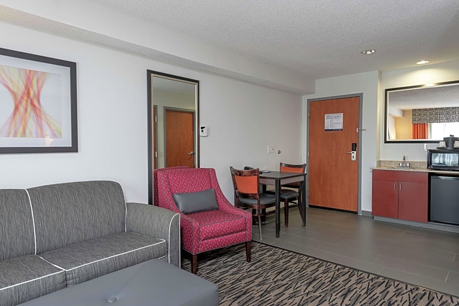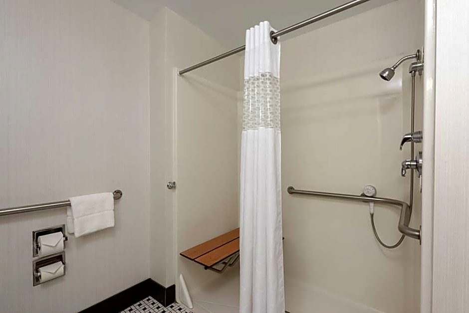 Any corresponding photo may not reflect the specific accessible room type or room feature. This mobility accessible, nonsmoking room features one king sized bed , and an accessible roll-in shower. The room features comfortable soft seating, microwave, refrigerator, a HDTV, and easy to operate alarm clock/radio. The free high speed internet access will help you stay connected while on the road. If you prefer not to work at the desk, you can use the convenient lapdesk instead. You'll also enjoy the convenience of having a coffee maker with tea service and iron/ironing board in your room.