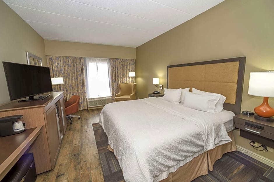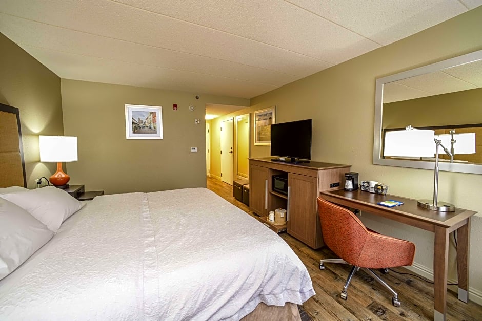 32-inch LCD TV, sofa bed, work desk, microwave, refrigerator, coffeemaker, free WiFi access Enjoy a restful stay in this comfortable room with a king-sized clean and fresh Hampton bed®, a sofa bed and a 32-inch TV with HD channels. This room also features a large work desk, a microwave, mini-refrigerator and a coffeemaker. Free WiFi access will help you to stay connected when on the road. The bathroom contains plush towels and a shower featuring a curved shower rod for added space and light.