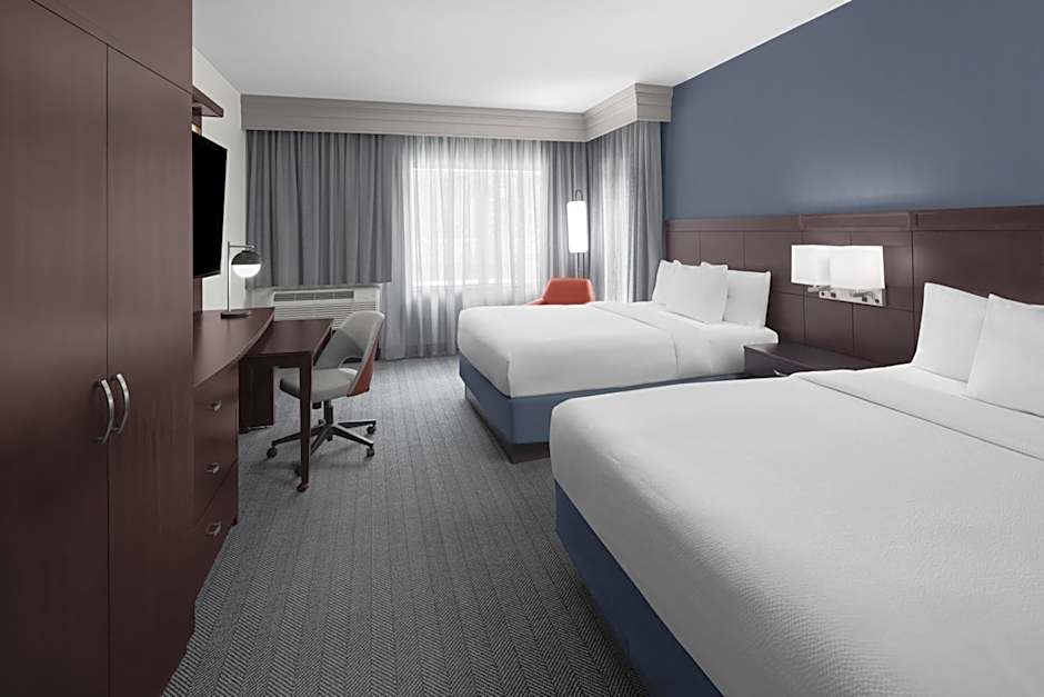 The Courtyard Cleveland University Circle hotel offers a variety of room types including Queen Rooms with Two Queen Beds, King Rooms with Sofa Beds, and One-Bedroom King Suites with Sofa Beds. Smoking is not allowed in any of the rooms. The rooms range in size from 312 sqft to 592 sqft and can accommodate between 3 and 5 adults, with children also allowed.