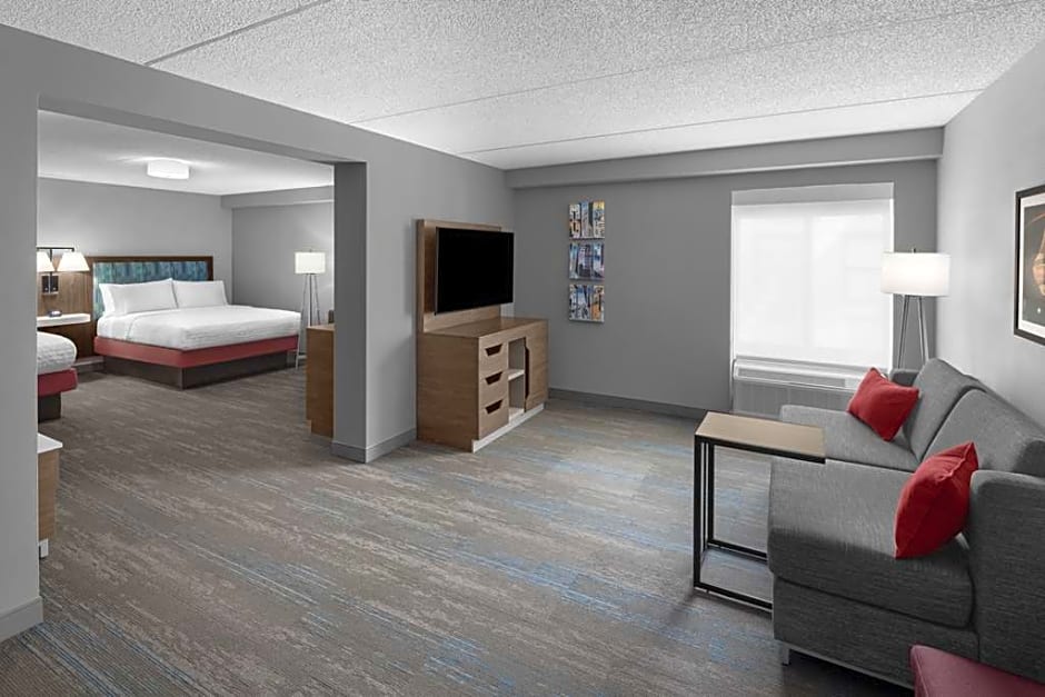 Seating area, desk and ergonomic chair, free WiFi, 37-inch LCD flat-screen HDTV. Make yourself at home in this spacious suite, featuring two queen-sized beds and a separate seating area. Surf the web with our WiFi access, or use it to get some work done in comfort at the desk with an ergonomic chair. Sit back in the easy chair and watch on-demand movies and premium HD channels on the 37-inch LCD TV. Settle down for the night in the clean and fresh Hampton bed®. Other amenities in this suite include fluffy towels and a coffee machine.