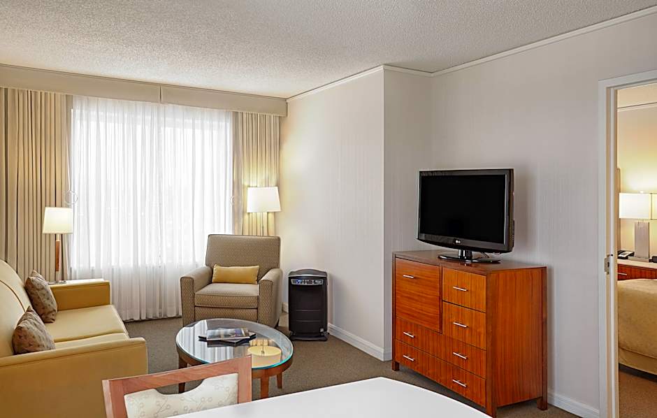 With separate bedroom and living area pull out sofa bed complimentary high speed internet 37 inch flat screen television dining table arm chair mini refrigerator wet bar sink and microwave agraria bath amenities coffee maker in room safe iron and board hair dryer.