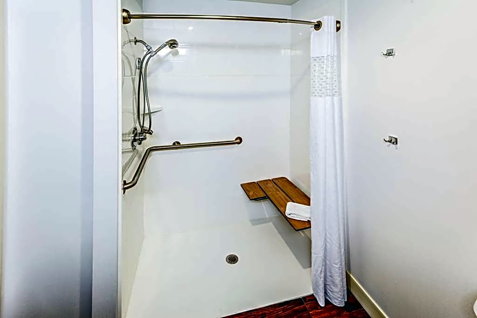 Any corresponding photo may not reflect the specific accessible room type or room feature. This mobility accessible, nonsmoking room features one king sized bed , and an accessible roll-in shower. The room features comfortable soft seating, microwave, refrigerator, a HDTV, and easy to operate alarm clock/radio. The free high speed internet access will help you stay connected while on the road. If you prefer not to work at the desk, you can use the convenient lapdesk instead. You'll also enjoy the convenience of having a coffee maker with tea service and iron/ironing board in your room.