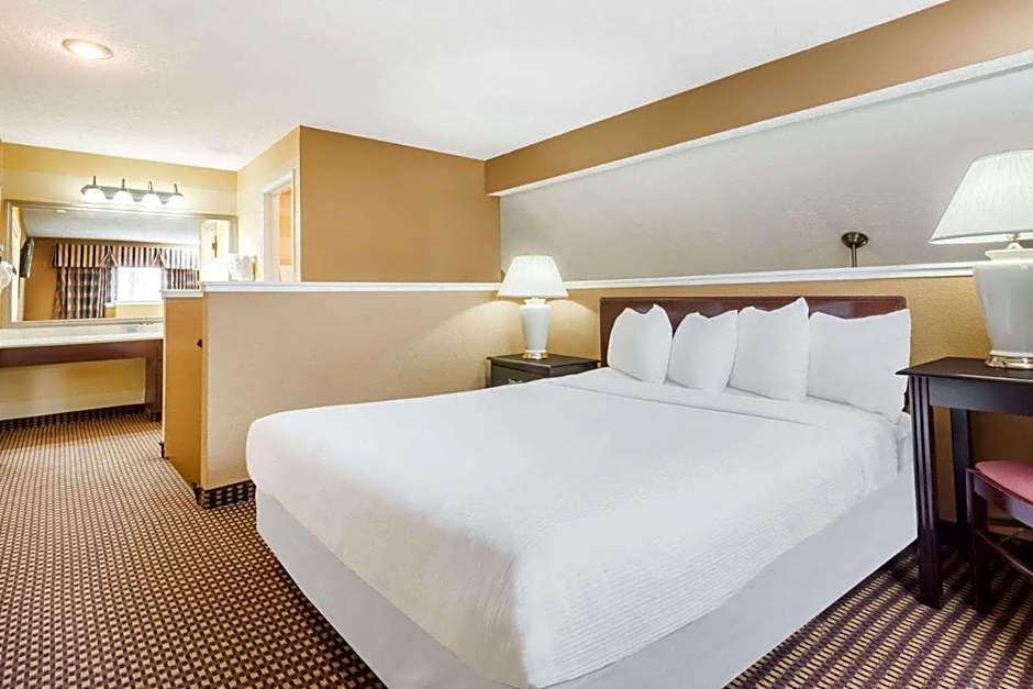 1 King Bed and 1 Queen Bed One-Bedroom Loft Suite Non-Smoking includes living room.