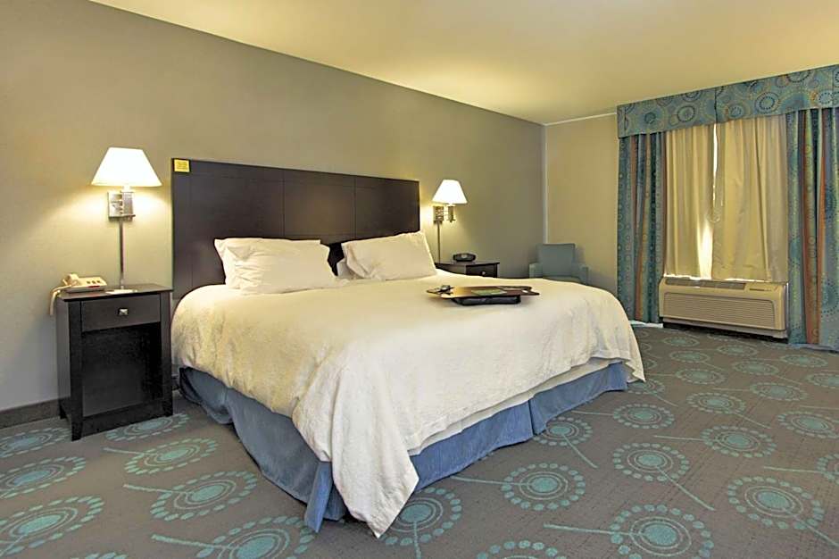 Sofa bed, 32-inch TV, free WiFi, work desk, coffeemaker, shower Unwind in this spacious room which features our clean and fresh Hampton king bed®, a convenient sofa bed, and a 32-inch TV. Catch up on work at the large desk, and stay connected with free WiFi access. Refresh in the bathroom which has a WaterPik showerhead and curved shower rod that allows more light and space in the shower.