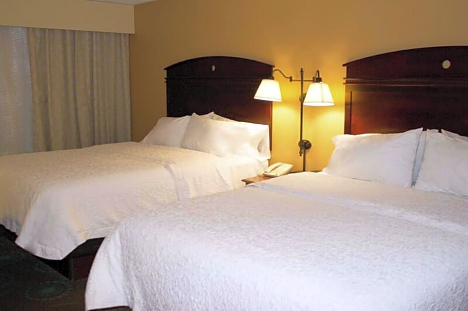 Free WiFi, 32-inch HDTV, work desk, coffeemaker, shower Unwind in this spacious non-smoking guest room which features 2 of our clean and fresh Hampton queen beds®, and a 32-inch HDTV. Catch up on work at the large desk, or surf the web with free WiFi access. Refresh in the bathroom which has a WaterPik showerhead and curved shower rod that allows more light and space in the shower.
