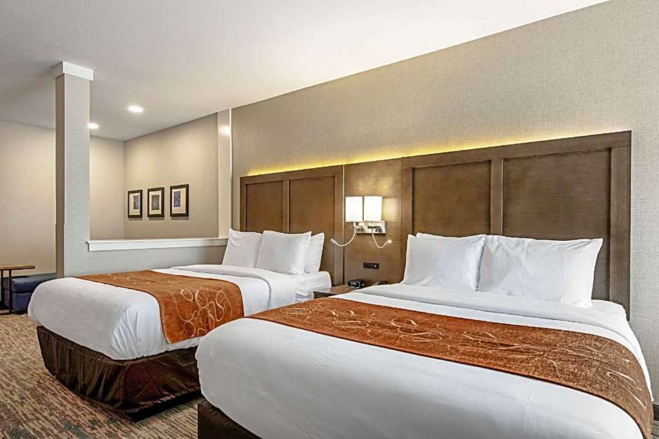The Comfort Suites Grove City - Columbus South hotel offers a variety of suite options. The rooms include Queen Suites with Two Queen Beds, King Suites with Sofa Bed, King Suites with Roll-In Shower, and King Suites. All the rooms are non-smoking and vary in size from 301 sqft to 355 sqft. The Queen Suites can accommodate up to 4 adults and 3 children, while the King Suites can accommodate up to 3 adults and 2 children. The bed options include Queen size beds and King size beds, with some rooms also offering a sofa bed.