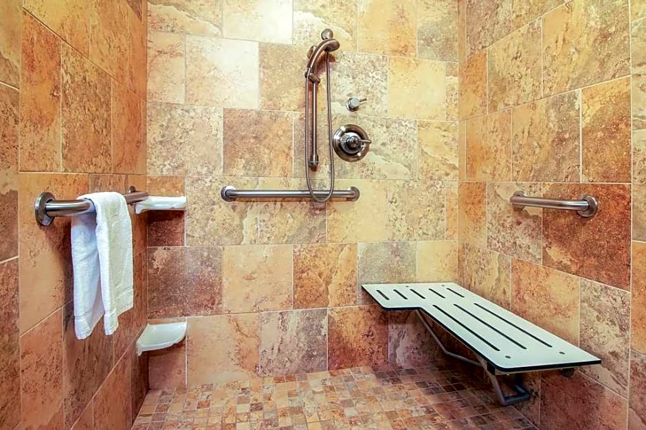 Any corresponding photo may not reflect the specific accessible room type or room feature. This mobility and hearing accessible, nonsmoking room features one king sized bed and an accessible roll-in shower. The room also has a visual alarm and notification devices for the doorbell or door knock and incoming phone calls. The room features comfortable sofa bed, an HDTV and easy to operate alarm clock/radio. The free high-speed internet access will help you stay connected while on the road. If you prefer not to work at the desk, you can use the convenient lapdesk instead. You'll also enjoy the convenience of having a coffee maker with tea service and iron/ironing board in your room.