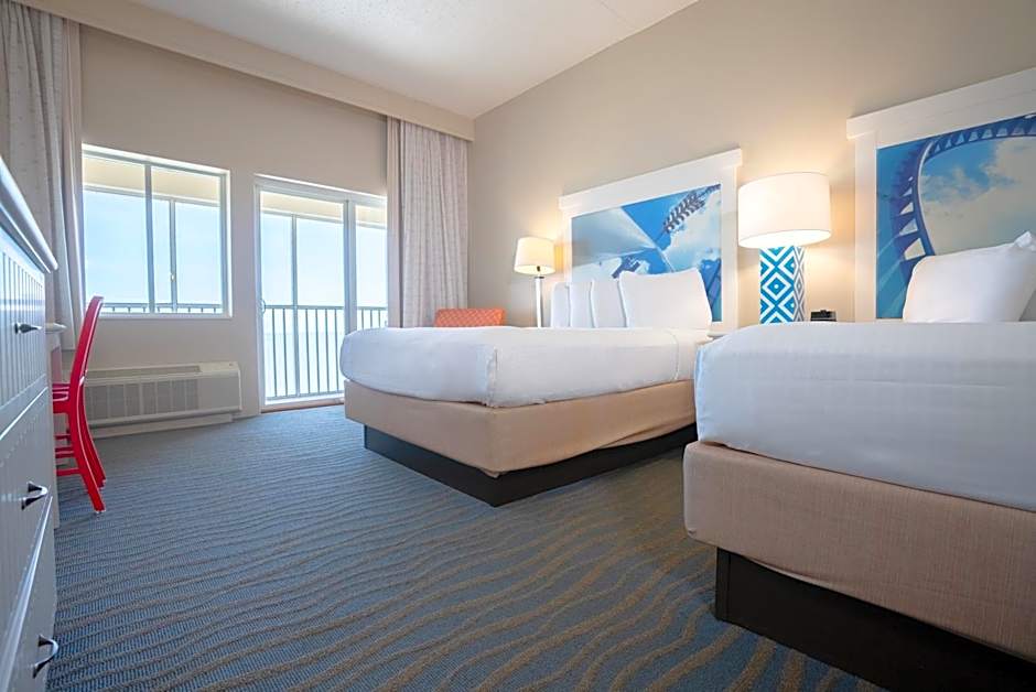 Guests rave about the convenient free parking, family-friendly kids' pool, and the fitness center to keep active while on vacation. With a restaurant, bar, and room service available, delicious dining options are always within reach. Whether you're traveling with family or friends, Cedar Point Hotel Breakers promises a memorable stay with its beachfront charm and abundance of amenities.