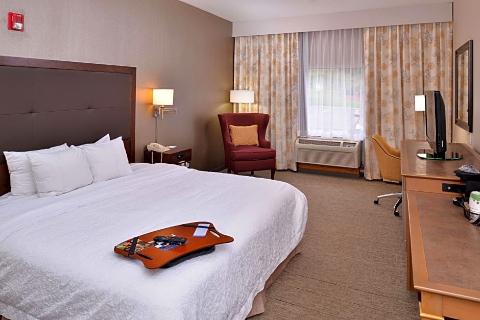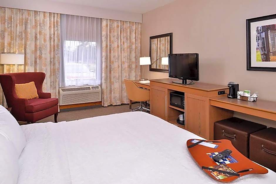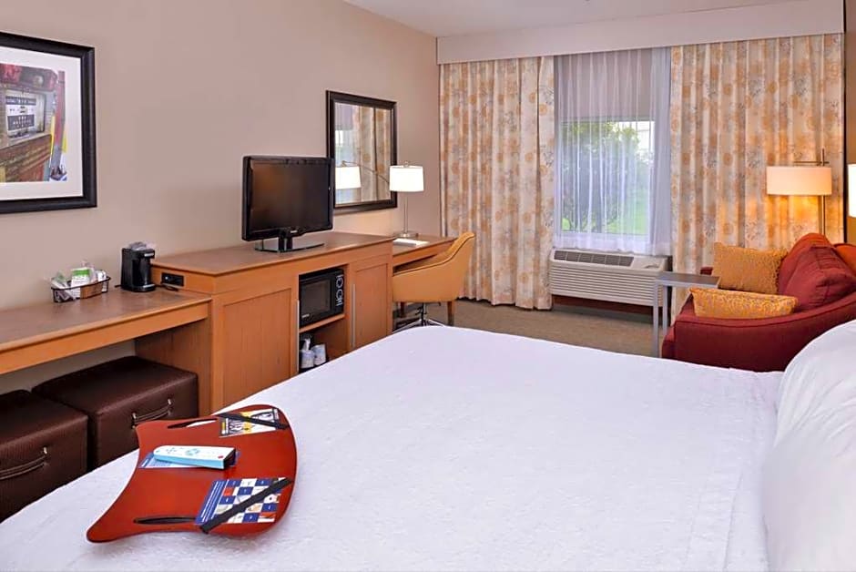 Sofa bed, free WiFi, TV, work desk, ergonomic chair, refrigerator, microwave, coffeemaker This spacious non-smoking guest room features a king-sized clean and fresh Hampton bed®, a convenient sofa bed, and a HDTV. Catch up on work at the large desk with ergonomic chair, or surf the web with free WiFi access. Refresh in the bathroom which has a WaterPik showerhead and curved shower rod that allows more light and space in the shower.