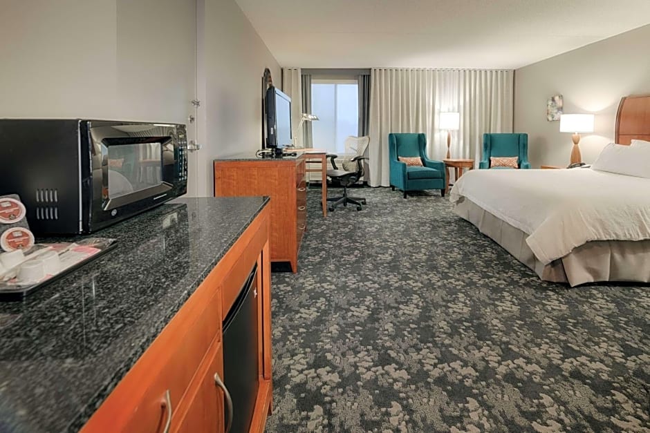 Complimentary WiFi, 32-inch TV, work desk, ergonomic chair, refrigerator, microwave. Unwind in this inviting guestroom, complete with one king-sized bed and convenient amenities. Keep on top of business at the desk with an ergonomic chair, browse online using the complimentary WiFi or entertain yourself with a movie on the 32-inch TV. Store and prepare your own meals and snacks with the refrigerator, microwave and Keurig® coffeemaker.