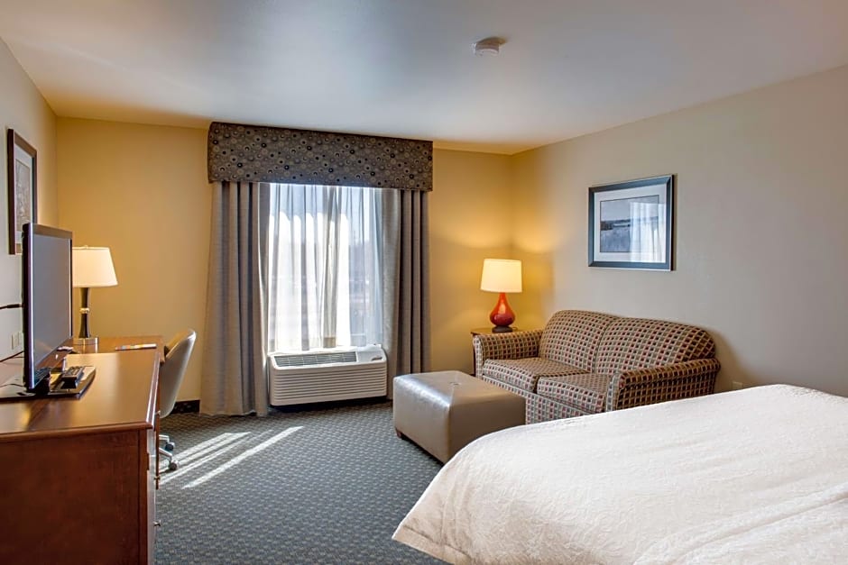 Sofa bed, HDTV, work area, free WiFi, tea/coffeemaker Have a relaxing stay in this king guest room that features our clean and fresh Hampton bed®. Unwind on a plush sofa bed while watching your favorite show on the HDTV. Enjoy a delicious hot drink from your in-room tea/coffeemaker. This room includes a spacious work desk and free WiFi to let you catch up on work while traveling. In the bathroom you'll enjoy our large dressing area with fluffy towels, a WaterPik® showerhead and curved shower rod for added space and light.