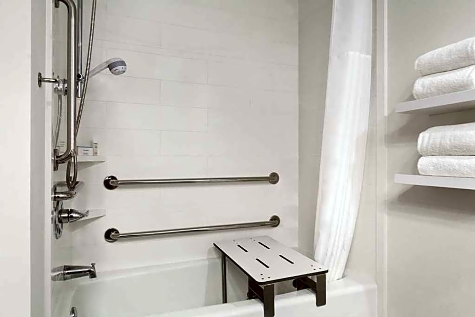 Any corresponding photo may not reflect the specific accessible room type or room feature. This mobility accessible, nonsmoking room features one queen sized bed , and an accessible 3x3 transfer shower. The room features comfortable soft seating, microwave, refrigerator, a HDTV, and easy to operate alarm clock/radio. The free high speed internet access will help you stay connected while on the road. If you prefer not to work at the desk, you can use the convenient lapdesk instead. You'll also enjoy the convenience of having a coffee maker with tea service and iron/ironing board in your room.