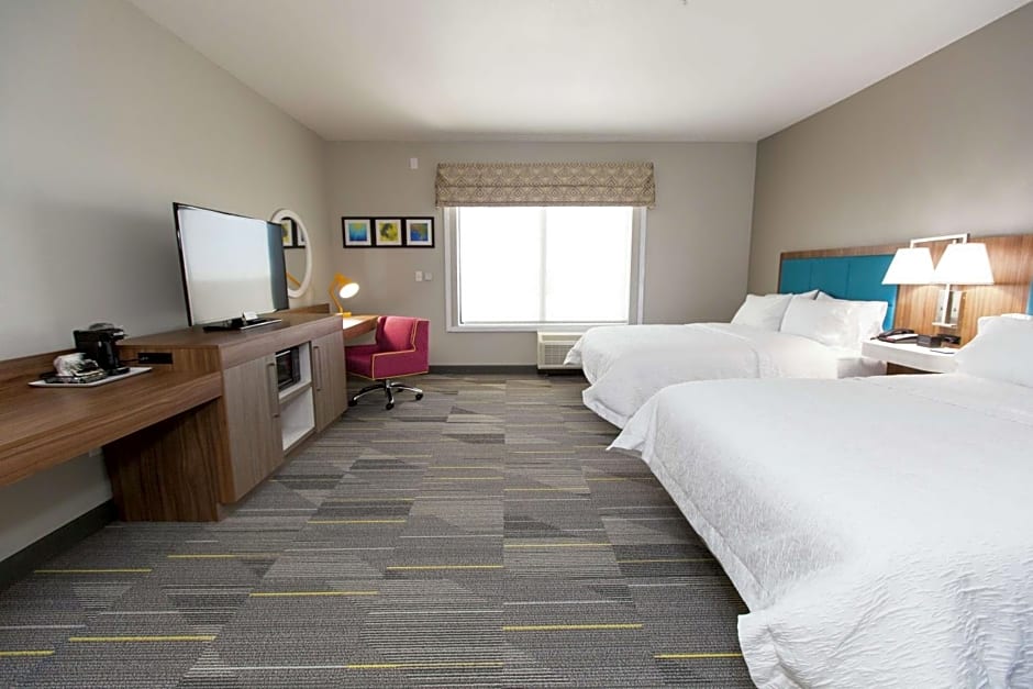 The Hampton Inn Mustang offers a variety of room types including Queen Rooms with Two Queen Beds, King Rooms, and King Rooms with Sofa Beds. All rooms are non-smoking and come in a size of 301 sqft. The Queen Rooms with Two Queen Beds and King Rooms accommodate 4 adults and 3 children, while the King Rooms with Sofa Beds accommodate the same number. Beds available in the rooms include double beds, queen size beds, and king size beds.