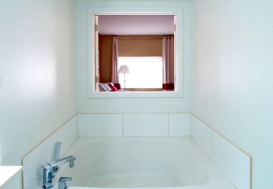 The hotel offers various types of rooms including guest rooms with 1 King bed, larger guest rooms with 2 Queen beds and a sofa bed, larger guest rooms with 2 Queen beds, guest rooms with 2 Queen beds, and larger guest rooms with 1 King bed and a whirlpool. All rooms are non-smoking. The occupancy of the rooms ranges from 2 adults and 1 child to 5 adults and 4 children.