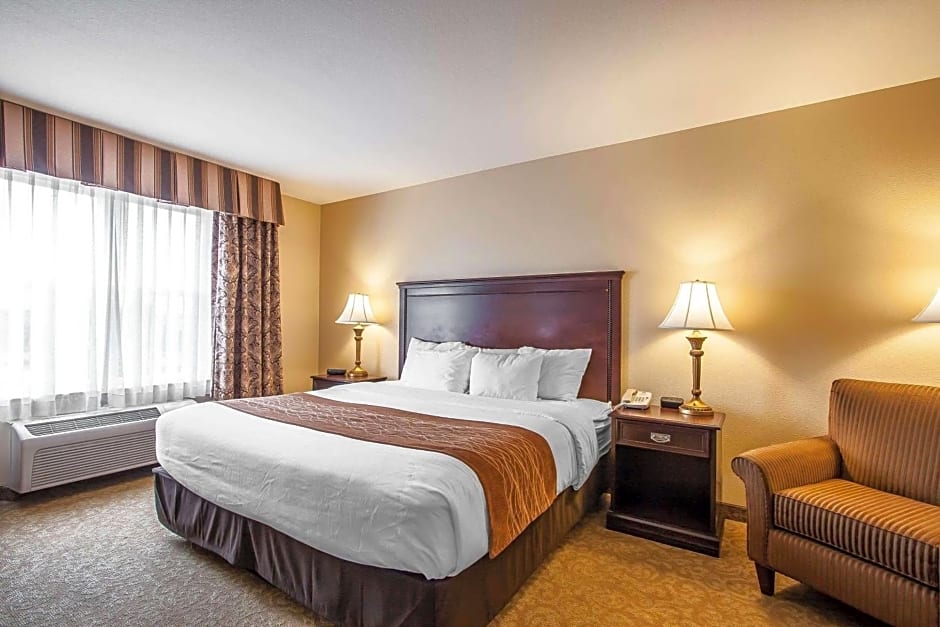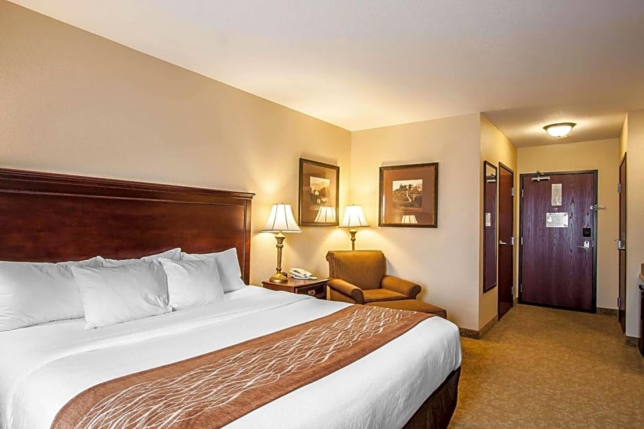 The Comfort Inn & Suites McMinnville Wine Country offers a variety of room types. These include King Rooms, Queen Rooms with Two Queen Beds, King Suites with Sofa Bed, and accessible rooms with features such as roll-in showers or accessible tubs. All rooms are non-smoking and have a size of 301 sqft. The king rooms accommodate 2 adults and 1 child, while the queen rooms and king suites accommodate 4 adults and 3 children.
