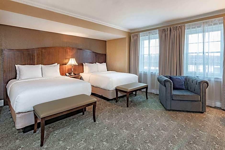 The Americus Hotel offers a variety of room types including suites, doubles, triples, and quadruples. All rooms are non-smoking. Bed sizes range from queen to king, and room sizes range from 301 sqft to 710 sqft. The maximum occupancy for a room is 6 adults and 4 children. Accessibility features are not mentioned in the provided data.