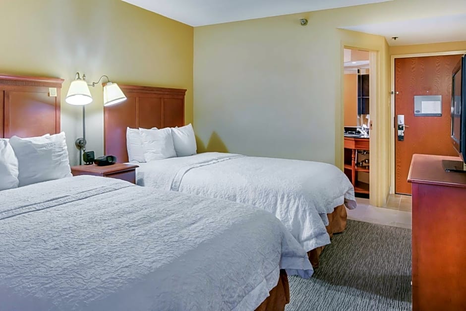 LCD HDTV, work desk, coffeemaker, free WiFi Experience a restful night in this comfortable room featuring two clean and fresh Hampton beds® and an LCD TV with HD channels. This room boasts a large work desk and free WiFi to allow you to keep on top of business while on the road. The bathroom contains plush towels and a shower with a curved shower rod, offering more space and light. Enjoy a delicious coffee from the coffeemaker included in this room.