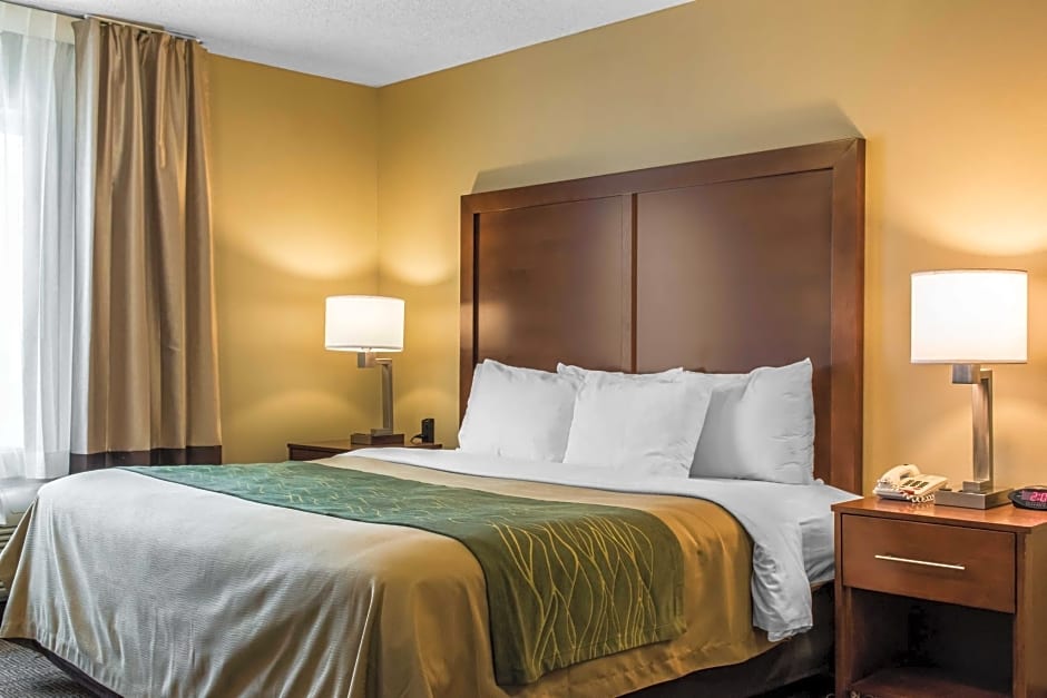 The Comfort Inn Lancaster County offers King Rooms and Queen Rooms with Two Queen Beds. Both room types are non-smoking and have a room size of 172 sqft. The King Room has 1 King size bed and accommodates 4 adults and 3 children, while the Queen Room with Two Queen Beds has 2 Queen size beds and also accommodates 4 adults and 3 children.