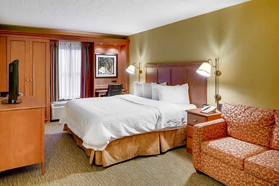 Sofa bed, free WiFi, HDTV, microwave, mini-fridge, coffeemaker, desk, shower Unwind in this non-smoking guest room which features our king-sized clean and fresh Hampton bed®, a convenient sofa bed, and a 25-inch HDTV. Catch up on work at the large desk, or surf the web with free WiFi access. Refresh in the bathroom which has a WaterPik showerhead and curved shower rod that allows more light and space in the shower.