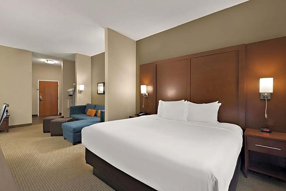 After a day full of adventure, retreat to one of the hotel’s spacious suites, all designed with your comfort in mind. Whether you prefer the cozy charm of a Queen suite capable of accommodating families or the spaciousness of a King suite perfect for relaxing after a busy day, Comfort Suites has you covered. Each suite boasts modern amenities like plush bedding, perfect for a restful night’s sleep, and plenty of room to unwind with your loved ones.