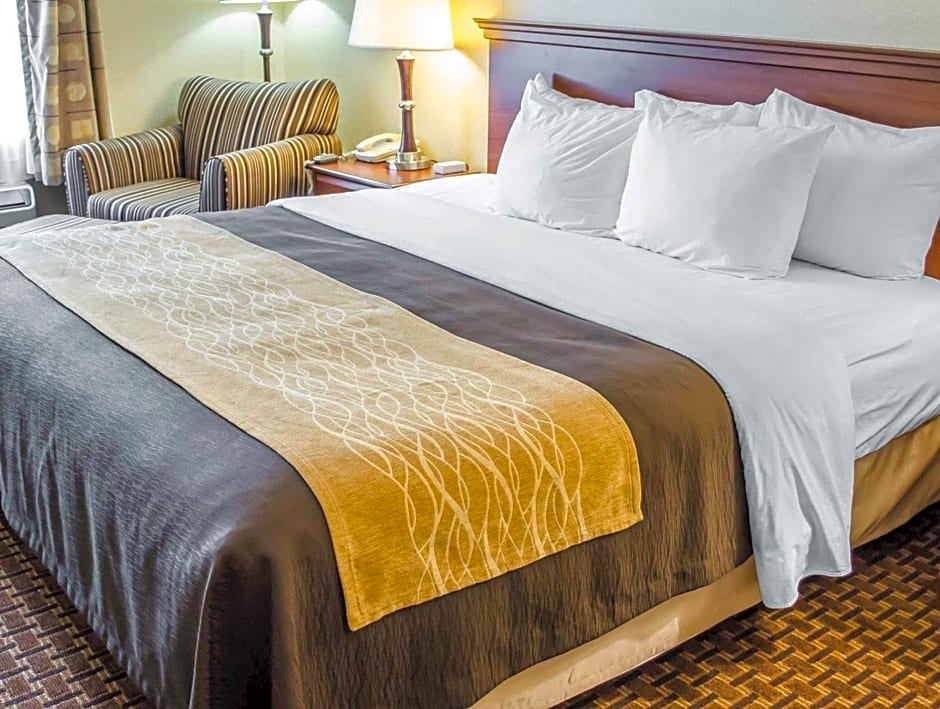 The Comfort Inn Mechanicsburg - Harrisburg South offers a variety of room options. They have King Rooms with accessible tubs and King Rooms on the first floor, both of which are non-smoking. These rooms accommodate 2 adults and 1 child and have 1 King size bed. They also have Queen Rooms with two Queen beds, which are non-smoking and can accommodate 4 adults and 3 children. Lastly, they offer Business King Rooms which are non-smoking, have 1 King size bed, and accommodate 2 adults and 1 child. All rooms have a room size of 161 sqft except for the Queen Rooms, which are 323 sqft.
