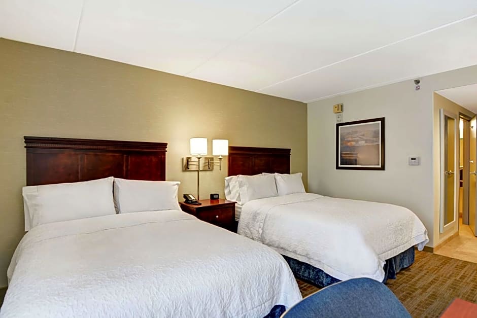 The Hampton Inn Scranton at Montage Mountain offers a variety of rooms suitable for different types of guests. The rooms include Deluxe King Rooms, Deluxe Double Rooms with Two Double Beds, King Suites with Sofa Beds and Fireplaces, Double Rooms with Two Double Beds, King Rooms, Double Rooms with Two Double Beds and Bath Tubs (mobility accessible), and King Rooms with Bathtubs (mobility accessible). All rooms are non-smoking and have a room size of 398 sqft or 431 sqft. The occupancy ranges from 3 adults and 2 children to 5 adults and 4 children.