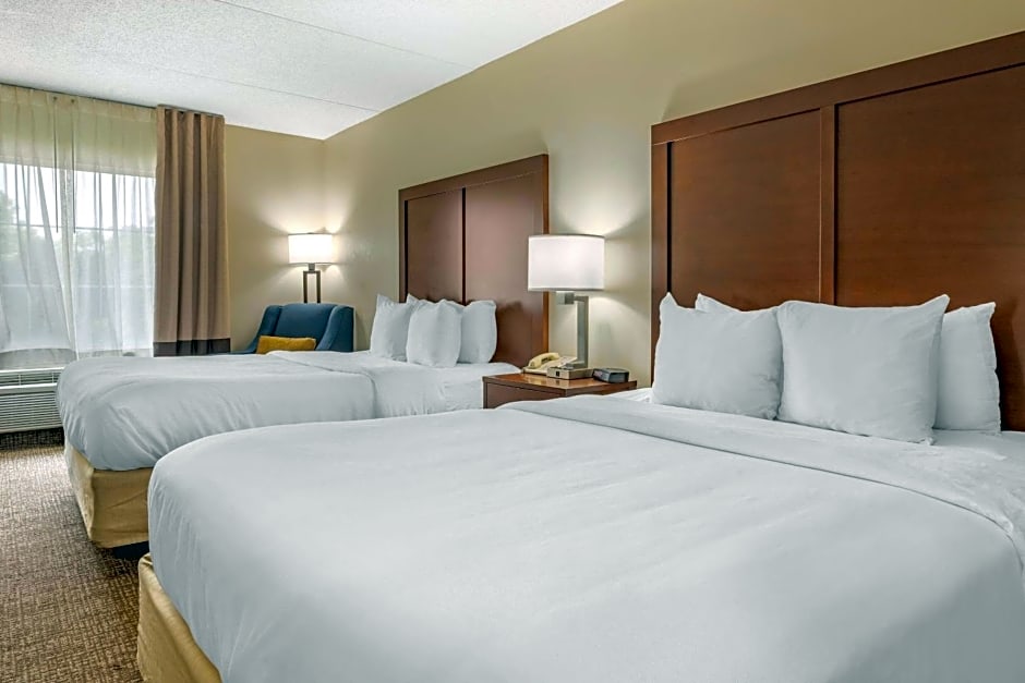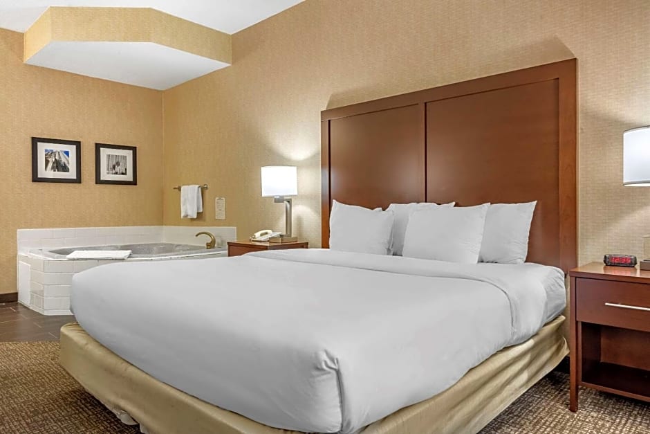 The Comfort Inn Meadowlands offers a variety of room types for guests. These include King Rooms with a hot tub, Queen Rooms with two queen beds, King Rooms, Standard Double Rooms with two double beds, and King Rooms with disability access. Smoking is not allowed in any of the rooms. The rooms can accommodate between 2 and 4 adults, with varying bed sizes including king, queen, and double beds.