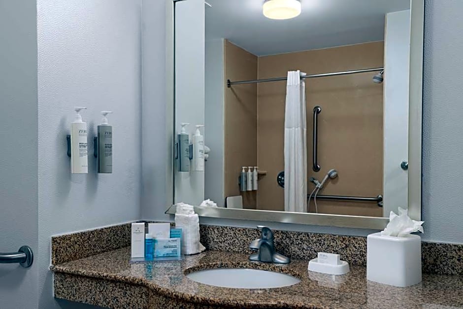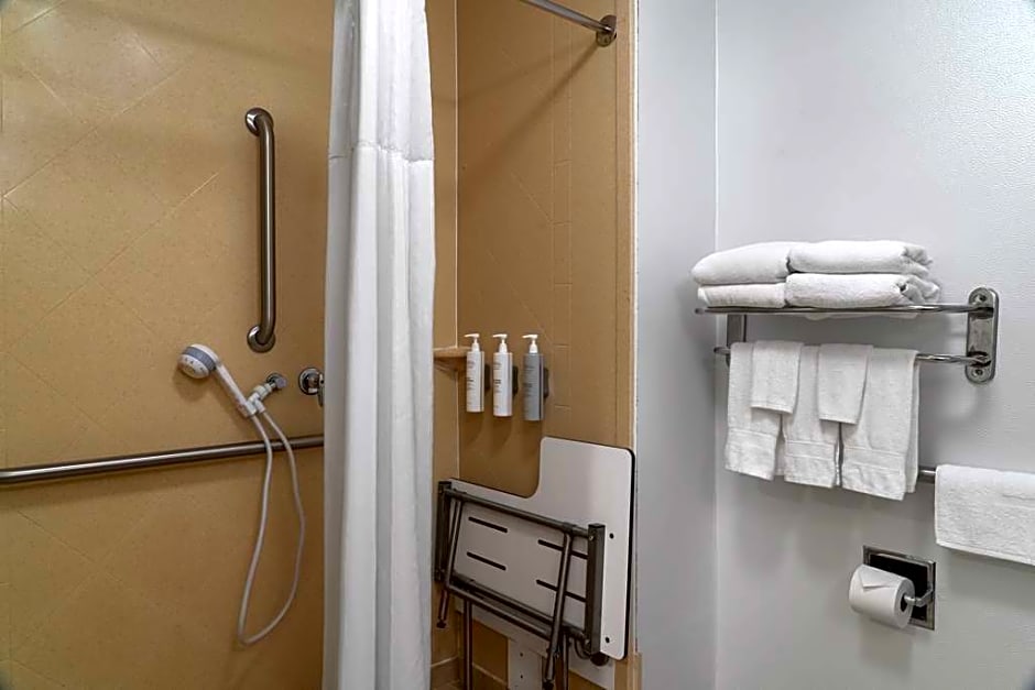 Any corresponding photo may not reflect the specific accessible room type or room feature. This mobility accessible, non-smoking room features one king-sized bed, and an accessible bath tub. The room features comfortable soft seating, microwave, refrigerator, a HDTV, and easy to operate alarm clock/radio. The free high-speed internet access will help you stay connected while on the road. If you prefer not to work at the desk, you can use the convenient lapdesk instead. You'll also enjoy the convenience of having a coffeemaker with tea service and iron/ironing board in your room.