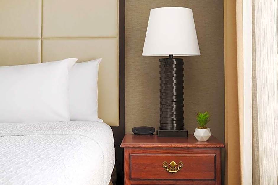 This hearing accessible non-smoking studio suite features one king-sized bed, visual alarm and notification devices for the doorbell or door knock and incoming telephone calls. This suite has a kitchen built to lower scale with full-sized refrigerator, microwave, dishwasher and twin burner stove, plus utensils, to make dining in easy. For added convenience and flexibility, there is a HDTV, a full-sized sofa sleeper as well as an additional work table and chair, separate from the dining area table. This suite will keep you connected with complimentary internet access, telephone, and alarm clock with MP3 player capabilities and pre-set local radio stations. Any corresponding photo may not reflect the specific accessible room type or room feature.