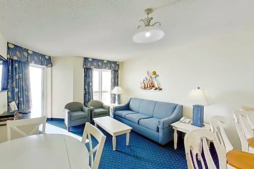 On-site dining options include Blue Bistro and SANDTRAP SPORTS BAR & GRILL, both serving American fare in a relaxed, beachy setting. These spots offer convenient dining without leaving the property. A fitness center keeps workout routines on track, while meeting/banquet facilities and a business center support events and work. Payment is handled by Mastercard, Discover, or Visa; cash is not accepted. With a golf course on the premises, golfers can pair a round with a seaside escape.